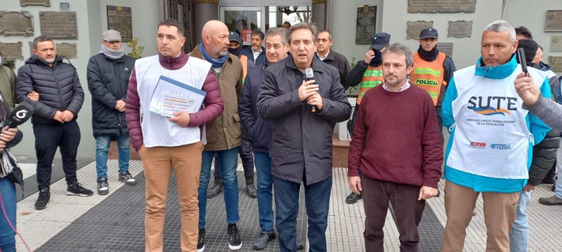 EL INTENDENTE SALIÓ A RECIBIR A LOS DOCENTES homepage Inf. General 8 agosto, 2022 En la puerta del palacio comunal les expresó que apoyaba su reclamo, pero aclaró que el municipio no tiene injerencia sobre sus sueldos. Al mismo tiempo, criticó al Gobernador, diciendo que debe continuar las negociaciones, y no resolver aumentos por “decreto”.