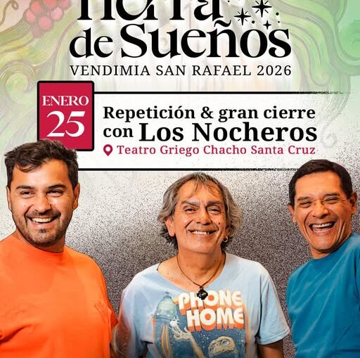 ÚLTIMAS ENTRADAS PARA LA VENDIMIA Y LOS NOCHEROS homepage Inf. General 14 enero, 2026 Por sus precios populares “volaron” las entradas para el acto central de Vendimia y Repetición con Los Nocheros. Podés adquirir el remanente en www.entradaweb.com.ar o en la boletería del Roma de 9 a 13 y de 17 a 21.