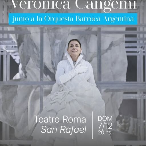 CON ACCESO LIBRE, VERÓNICA CANGEMI VUELVE A SAN RAFAEL PARA UN IMPERDIBLE CONCIERTO CON LA ORQUESTA BARROCA ARGENTINA homepage Inf. General 1 diciembre, 2025 El próximo fin de semana, San Rafael volverá a recibir a una de las máximas exponentes de la música clásica argentina: Verónica Cangemi, que protagonizará un imperdible concierto acompañada de la Orquesta Barroca Argentina. El destacado espectáculo cultural se desarrollará el próximo domingo 7 de diciembre (víspera de feriado) a las 20 horas en el teatro Roma y la entrada será libre y gratuita. El evento cuenta con el apoyo de la Universidad de Congreso. La soprano regresa a nuestro departamento junto a la Orquesta Barroca Argentina que ella misma fundó y dirige. El conjunto reúne a instrumentistas especializados en estilo barroco y se ha consolidado como una referencia regional gracias a sus actuaciones en escenarios nacionales e internacionales, donde ofrece versiones