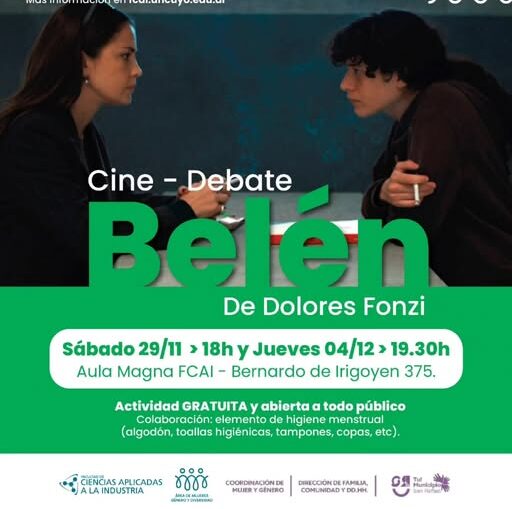 PROYECCIÓN DEL FILME “BELÉN” EN LA FCAI homepage Inf. General 25 noviembre, 2025 En el marco del 25N, Día Internacional de la Lucha contra la Violencia hacia la Mujer se realizarán proyecciones gratuitas del filme Belén de Dolores Fonzi. Serán el sábado 29 a las 18 y el jueves 4 a las 19.30 en la FCAI (B. de Irigoyen 375). Se solicita la colaboración con elementos de higiene femenino.