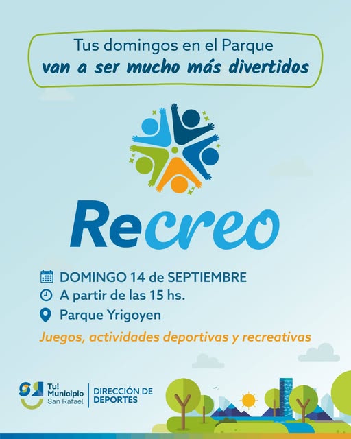 DEBUTA RECREO EN EL PARQUE YRIGOYEN homepage Inf. General 10 septiembre, 2025 Este domingo arranca el recreo en el Parque Yrigoyen. Desde las 15 habrá juegos y actividades deportivas y recreativas para los chicos y sus familias. Comentarios comentarios