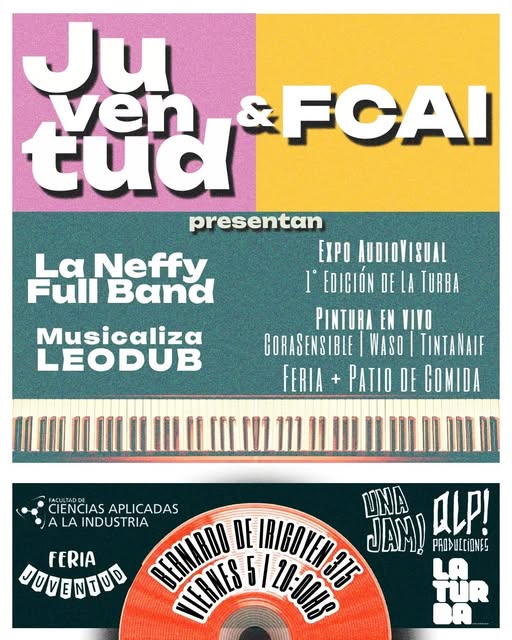 FERIA JUVENTUD EN LA FCAI-UNCUYO homepage Inf. General 3 diciembre, 2025 La Feria Juventud desembarca en la Faculta de Ciencias Aplicadas. Será el viernes desde las 20 en B. de Irigoyen 375 junto a Música en Vivo, Jam de Dibujo, Cortos Audiovisuales, Pintura y más. Comentarios comentarios