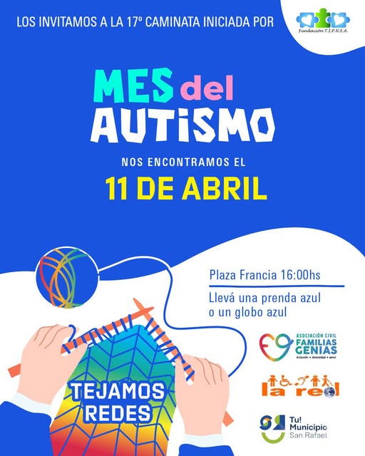 CAMINATA POR EL MES DEL AUTISMO Carrousel Inf. General 6 abril, 2026 En el marco del Mes del Autismo, la asociación Familias Genias, el Municipio y la Red de Discapacidad organizan la 17ma caminata de concientización. Será el sábado desde las 16 en Plaza Francia. Se pide asistir con una prenda o globo de color azul Comentarios comentarios