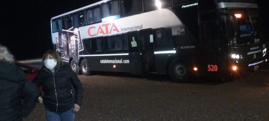 Colectivo de Cata varado 4 horas en el arco de ingreso EL Ojo Critico homepage 3 junio, 20203 junio, 2020 Un colectivo que partió de Mendoza a las 21 hs, con destino a Bowen, quedó varado esta madrugada en el arco de ingreso a San Rafael, debido a que personal de Gendarmería subió al ómnibus e identificó a dos jóvenes que presuntamente llevaban drogas entre sus pertenencias. En definitiva, entre idas y vueltas, cuatro horas demoraron en labrarles un acta y subirlos de nuevo al micro, por lo que el pasaje en lugar de arribar a Bowen a las 2 AM, lo hizo a las 6 AM (foto gentileza FM del Este).