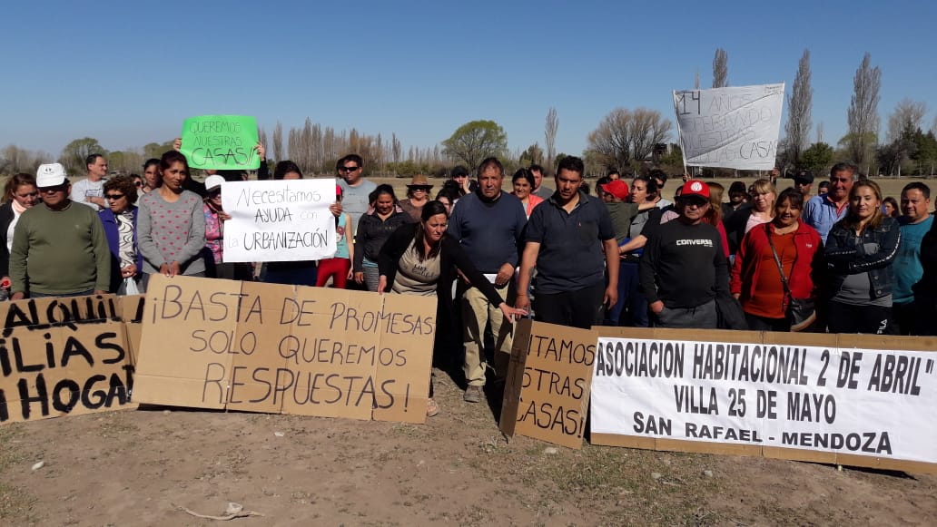 Villa 25 de Mayo: Vecinos se manifestaron para pedir por la construcción de un barrio prometido EL Ojo Critico Inf. General inicio 22 septiembre, 201922 septiembre, 2019 Ayer en la tarde, decenas de habitantes de la Villa 25 de Mayo, pertenecientes a la "Asociación Vecinal 2 de Abril", se manifestaron para reclamar por la construcción de un barrio que les prometieron distintas autoridades hace ya más de 15 años. Se trata de un complejo de 104 viviendas, en calle Pio Ara del mencionado distrito. En el año 2013, se firmó en la municipalidad un acta donde ésta se comprometía a realizar la urbanización de los terrenos, requisito indispensable para que la provincia, a través del IPV, construya las casas. Hartos de esperar respuestas, ayer salieron todos juntos a manifestarse, y el martes harán lo propio, frente a la Municipalidad, o bien cortando la ruta de acceso al distrito.