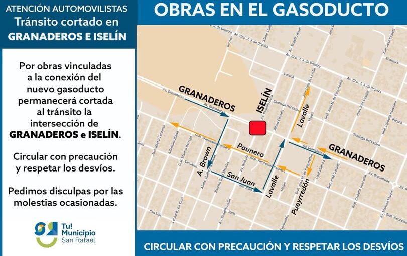 EN ISELÍN Y GRANADEROS EMPIEZA UNA OBRA CLAVE EN LA ETAPA FINAL DEL GASODUCTO homepage Inf. General 2 octubre, 2025 En las próximas horas la empresa que está construyendo el gasoducto para dotar de gas natural a miles de familias de San Rafael y General Alvear, iniciará una obra clave dentro de la inversión que ejecuta el Municipio y que está en su etapa final. Se trata de la conexión del nuevo tendido de 36 kilómetros a la actual red que alimenta a toda la ciudad y que se encuentra en la intersección de Granaderos e Iselín. Para concretar dicho empalme, se realizará una importante intervención que prevé la interrupción del tránsito en dicha intersección. Se trata de una etapa crucial dentro de la inversión, pues el actual tendido recibirá la nueva conexión para ampliar la factibilidad de gas natural residencial e