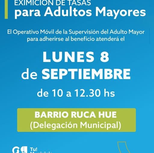 OPERATIVOS PARA AYUDAR A ADULTOS MAYORES A LOGRAR LA EXIMICIÓN DE TASAS MUNICIPALES homepage Inf. General 5 septiembre, 2025 Con el objetivo de que todos los "abuelos" puedan acceder al beneficio, comenzó un programa itinerante en barrios y distritos. El primer punto fue en el espacio El Taller de Suipacha y Emilio Civit, donde decenas de vecinos se acercaron a consultar e inscribirse al beneficio que -hace más de 20 años- ofrece el Municipio para jubilados y pensionados. Actualmente hay 6.000 personas adheridas a la eximición en todo el departamento. “Es una forma de acercar la oficina a los barrios y distritos para que los adultos mayores no tengan que trasladarse a hacer el trámite hasta el centro”, explicó el Supervisor del Adulto Mayor, Cristian Escudero. Los operativos territoriales continuarán durante las próximas semanas visitando cada punto del departamento. Los próximos destinos son