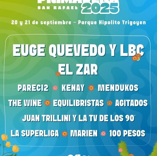 PRIMAVERA EN EL PARQUE 2025 YA TIENE GRILLA: EUGE QUEVEDO Y EL ZAR CERRARÁN DOS JORNADAS IMPERDIBLES homepage Inf. General 8 septiembre, 2025 El arribo de septiembre nos anuncia la llegada del mega festejo de la Primavera en el Parque. El festival musical más esperado del año viene con una edición recargada para este 2025 con dos jornadas a pura música y fiesta al aire libre. Entre el sábado 20 y domingo 21 vamos a disfrutar de una increíble grilla que va a hacer “explotar” el Parque Yrigoyen. Como siempre con entrada libre y gratuita. Cada jornada tendrá una grilla con múltiples bandas y DJ´s. En los cierres aparecen dos nombres que la van a romper. El final de los shows del sábado estará a cargo de El Zar. El dúo indie pop que conquistó la escena nacional con su sonido fresco, poético y bailable, llega