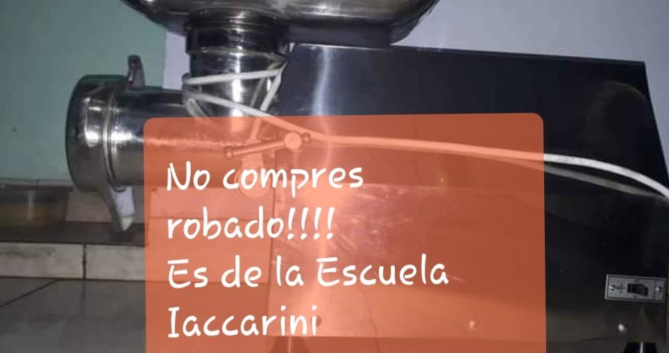 ROBARON EN LA ESCUELA PASCUAL IACCARINI homepage Policiales 7 agosto, 2020 Otra vez un establecimiento educativo sufrió la visita de delincuentes, quienes se metieron en la sala de chacinados. Se llevaron una moledora de carne tipo industrial (similar a la de la foto), cuchillos especiales para carneo, y espátulas, entre otras cosas. Patricia Nievas, directora de la escuela, explicó a #ALERTA SAN RAFAEL que son herramientas difíciles de vender, porque son para actividades específicas, y que se utilizaban para prácticas profesionales. Nievas pide denunciar el 911 si conocen que alguien esté ofreciendo dichos materiales.
