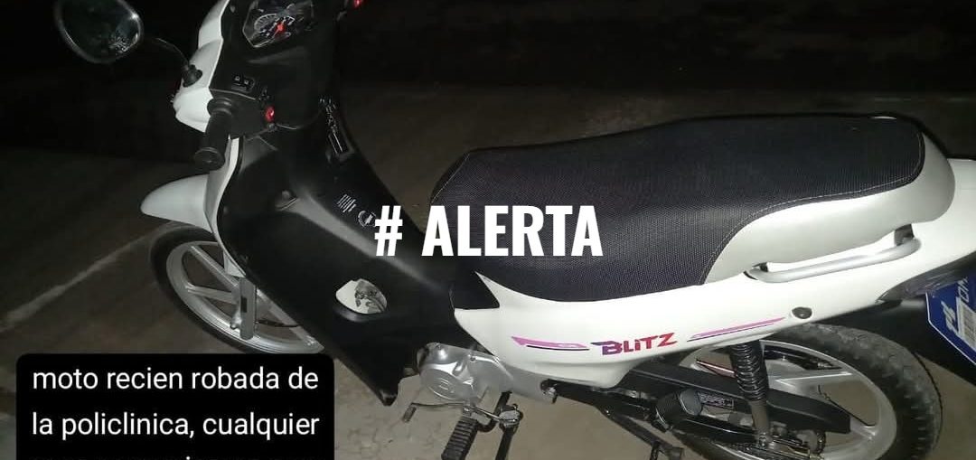 ROBARON LA MOTO DE UNA TRABAJADORA DE LA POLICLINICA homepage Policiales 23 enero, 202523 enero, 2025 La había estacionado en la vereda del centro asistencial, en Av. Hto. Yrigoyen, a metros de Lencinas. Se trata de una Motomel Blitz 110 cc color blanca. En caso de identificarla, llamar al 2604302182, o al 911.