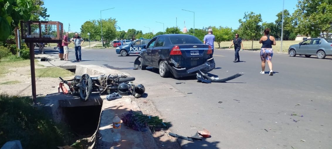 CHOQUE GRAVE homepage Policiales 14 diciembre, 2022 Un Fiat y un Chevrolet Corsa chocaron en la esquina de San Martín y Emilio Mitre. Pero debido a la inercia, el Corsa cruzó de carril e impactó contra dos chicas que circulaban en moto. Una de ellas se incrustó contra el parabrisas del auto, y la otra voló varios metros antes de caer al asfalto. Las víctimas fueron trasladadas por el SEC al Htal. Schestakow.