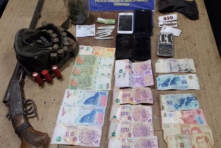 ALLANAMIENTO homepage Policiales 12 julio, 2022 Personal del Departamento Lucha Contra el Narcotráfico de la Policía de Mendoza, allanó una propiedad en calle Las Aguaditas s/n de Goudge, donde aprehendió a un hombre de 48 años, acusado de venta de drogas. También se procedió al secuestro de un frasco con cogollos de Marihuana (12 gramos), un envoltorio de cocaína, $3.800, 7 cigarrillos de Marihuana (4 gramos), una balanza de precisión, 4 celulares, una escopeta calibre 16 y cartuchos.